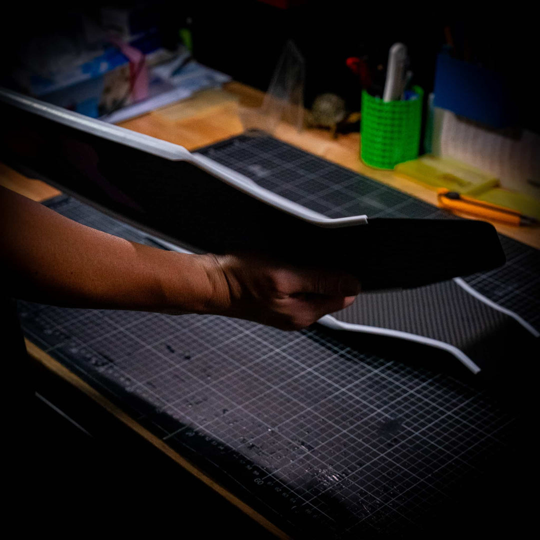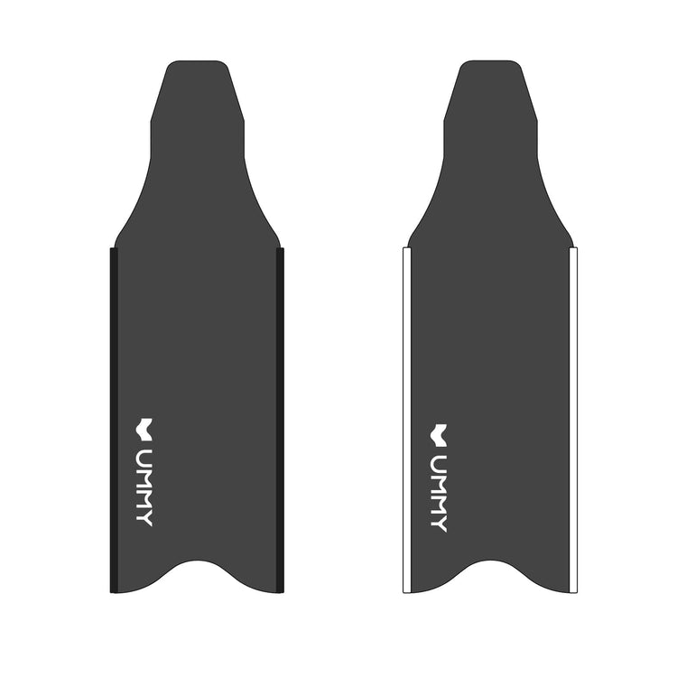 UMMYのプロダクトは常にスタイリッシュである必要があります。UMMY ONEはブレードの刃先、裏面のカーボンの張り合わせのデザインにはUMMYのシンボルマークを使用しております。、またそのシンボルマークとの絶妙なバランスのブレードのカットによりオンリーワンの美しいフィンが完成したのです。