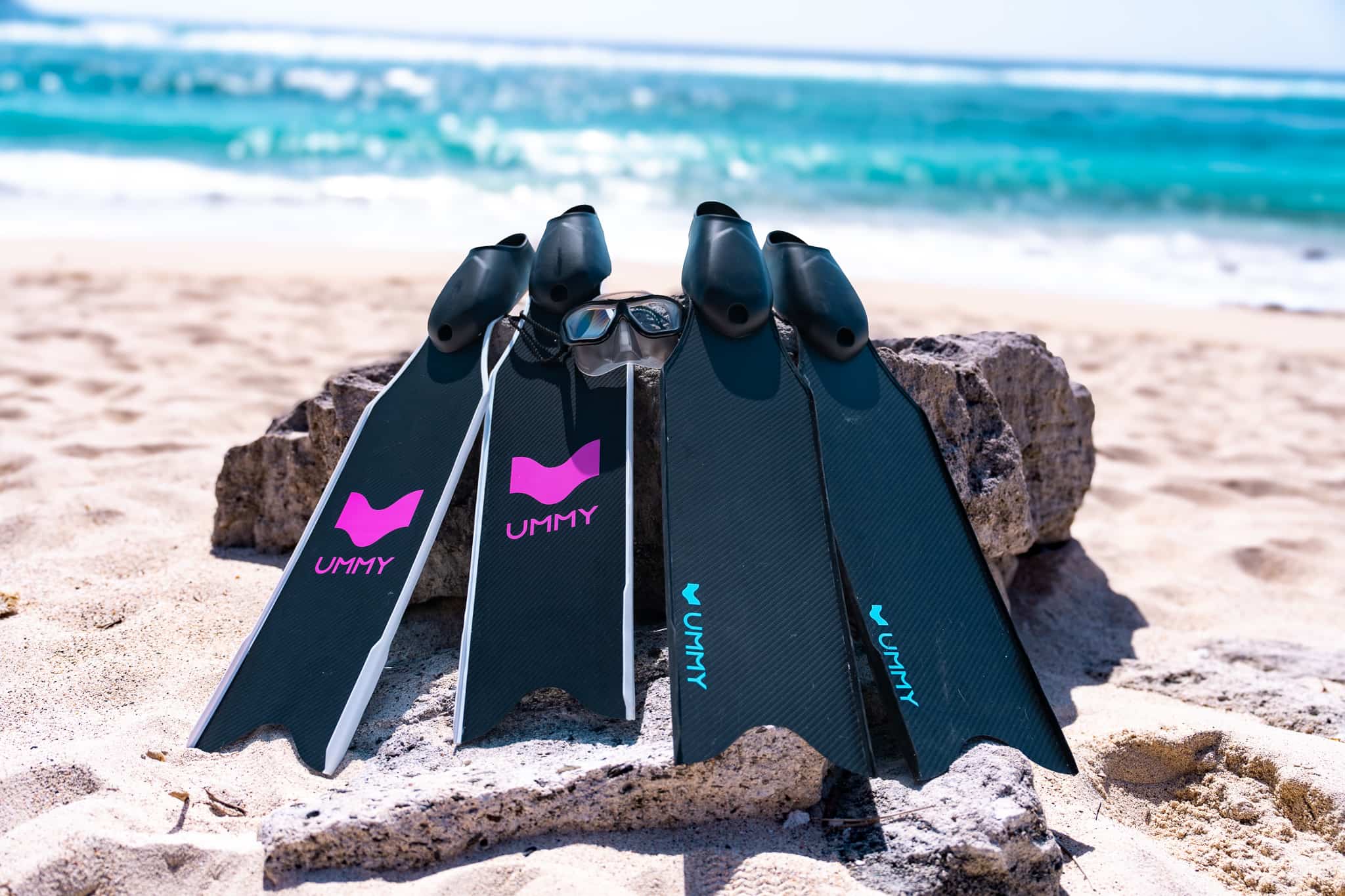 UMMYが目指すフィンはフリーダイバー、スキンダイバー、スピアフィッシャー垣根無く、素潜りを愛する多くのダイバーが満足できるフィン。それを叶える為に一年、試行錯誤し、デザイン、カラバリ、機能性、フットポケット、価格、全てをゼロベースで見直しUMMYオーナー自ら納得のできるフィンの開発に成功することができました。