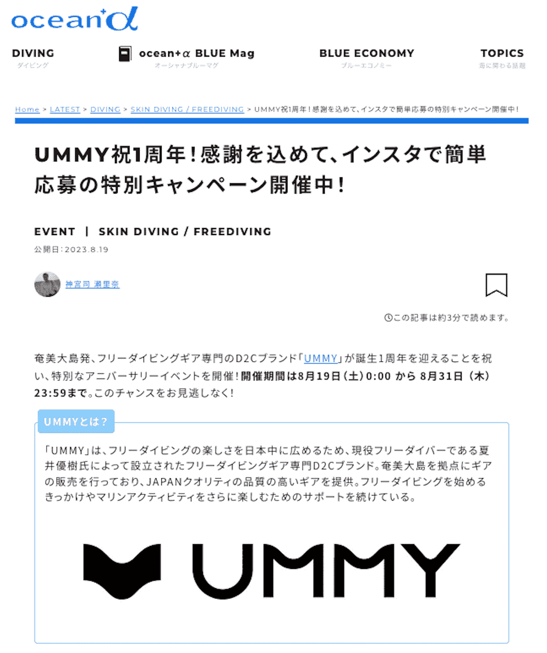- "海を纏う" フリーダイビングの新たなスタンダード -