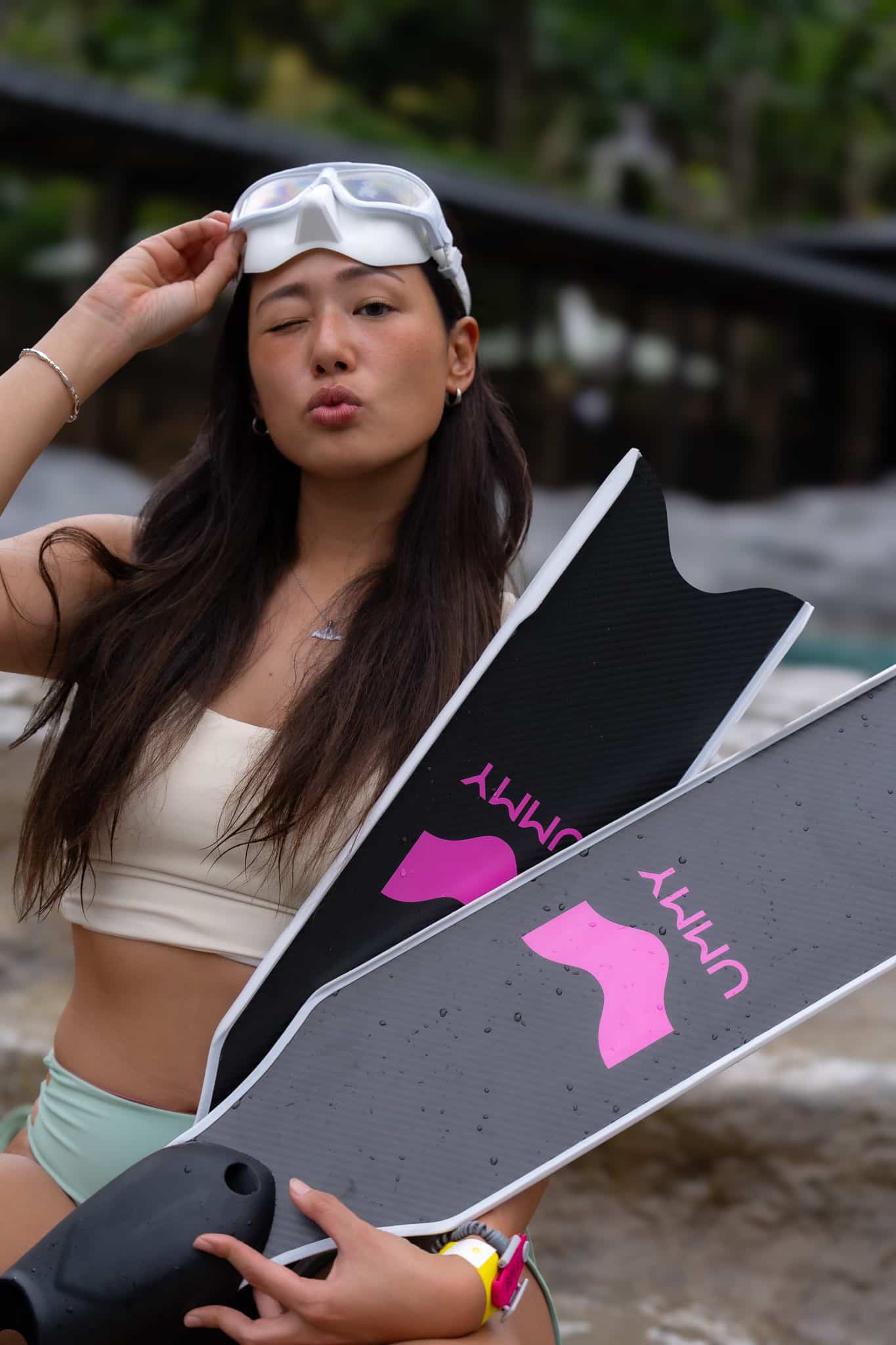 UMMY, la marque qui a révolutionné la scène de l'apnée au Japon, et Navy Apparel, une marque de vêtements pour les amoureux de la mer, ont enfin collaboré ! L'aileron en carbone élégant et de haute qualité UMMY ONE a été combiné avec le design unique et élégant de NAVY Apparel pour créer un magnifique aileron qui renverse la sagesse conventionnelle des ailerons en carbone ! Les masques portés par les sirènes sont ludiques et sont dotés du design Streamline le plus vendu d'UMMY.