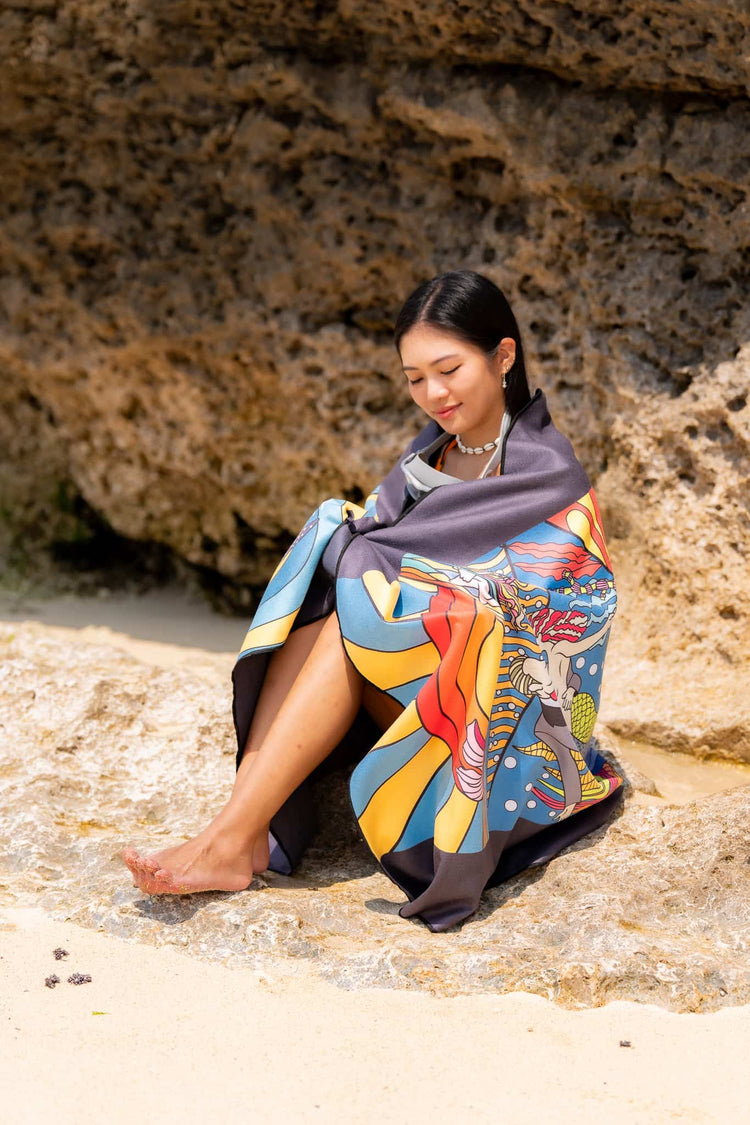 Les designs colorés et élégants sont typiques de NAVY APPAREL, notamment des sirènes et des requins-baleines portant des masques UMMY. Il est grand, avec une longueur totale de 180 cm, donc deux adultes peuvent s'asseoir confortablement et porter leurs bagages.
